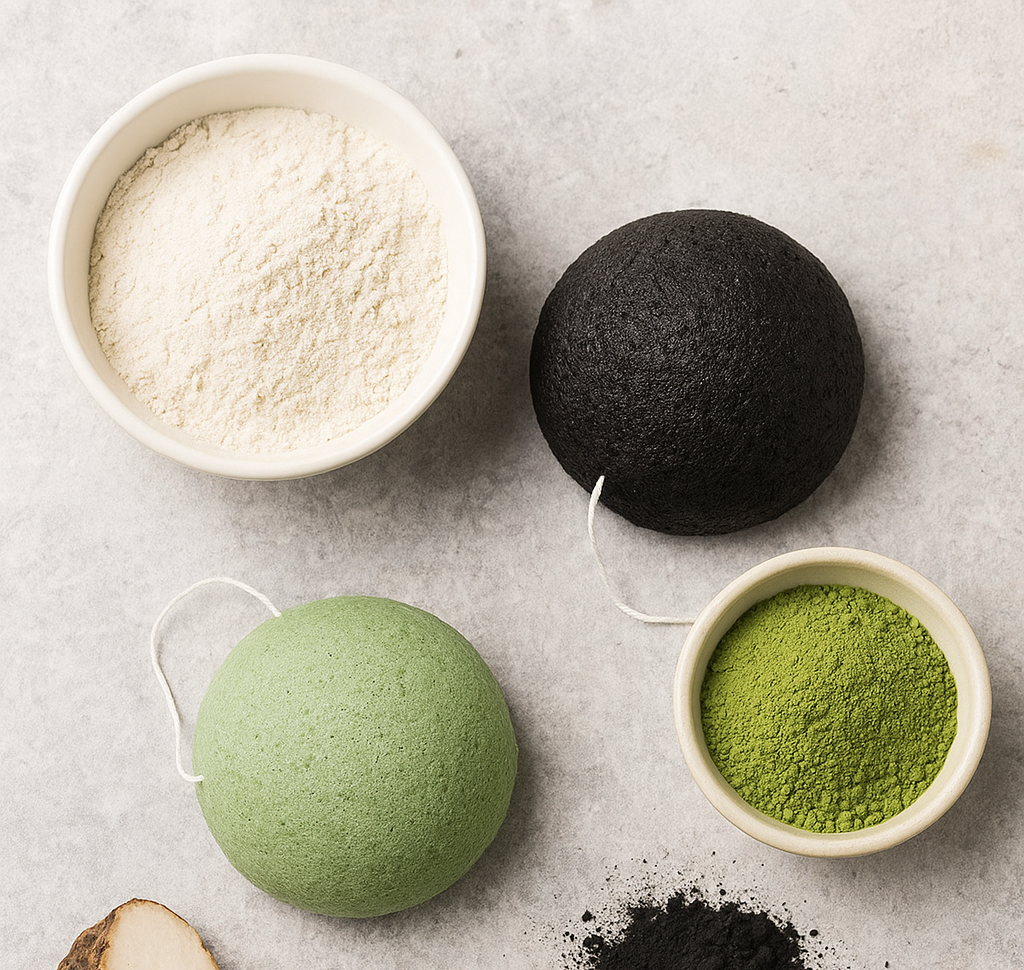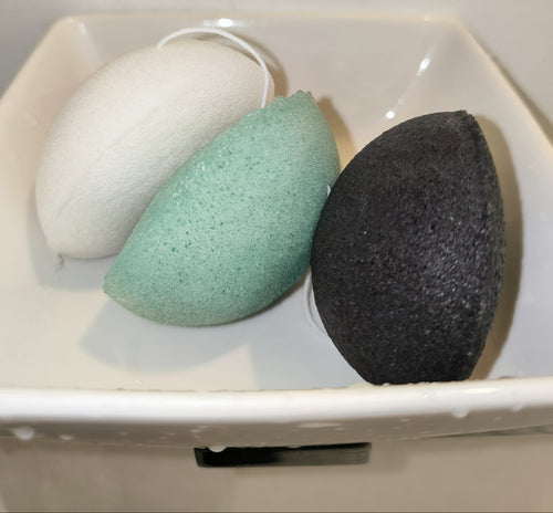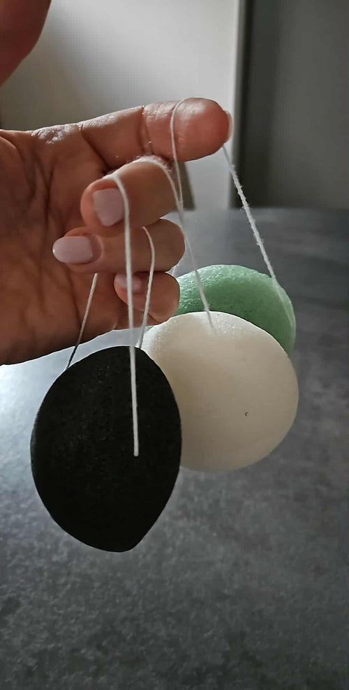 L’éponge Konjac, charbon ou thé vert nettoie en douceur sans produit (même juste avec de l’eau).